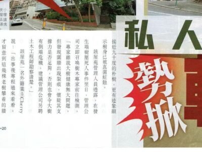 [EASTWEEK 東周刊] 私人屋苑勢掀斬樹潮 20 Aug 20140 Comment Interview by Eastweek on 20th Aug, 2014 私人屋苑勢掀斬樹潮 Source: Eastweek