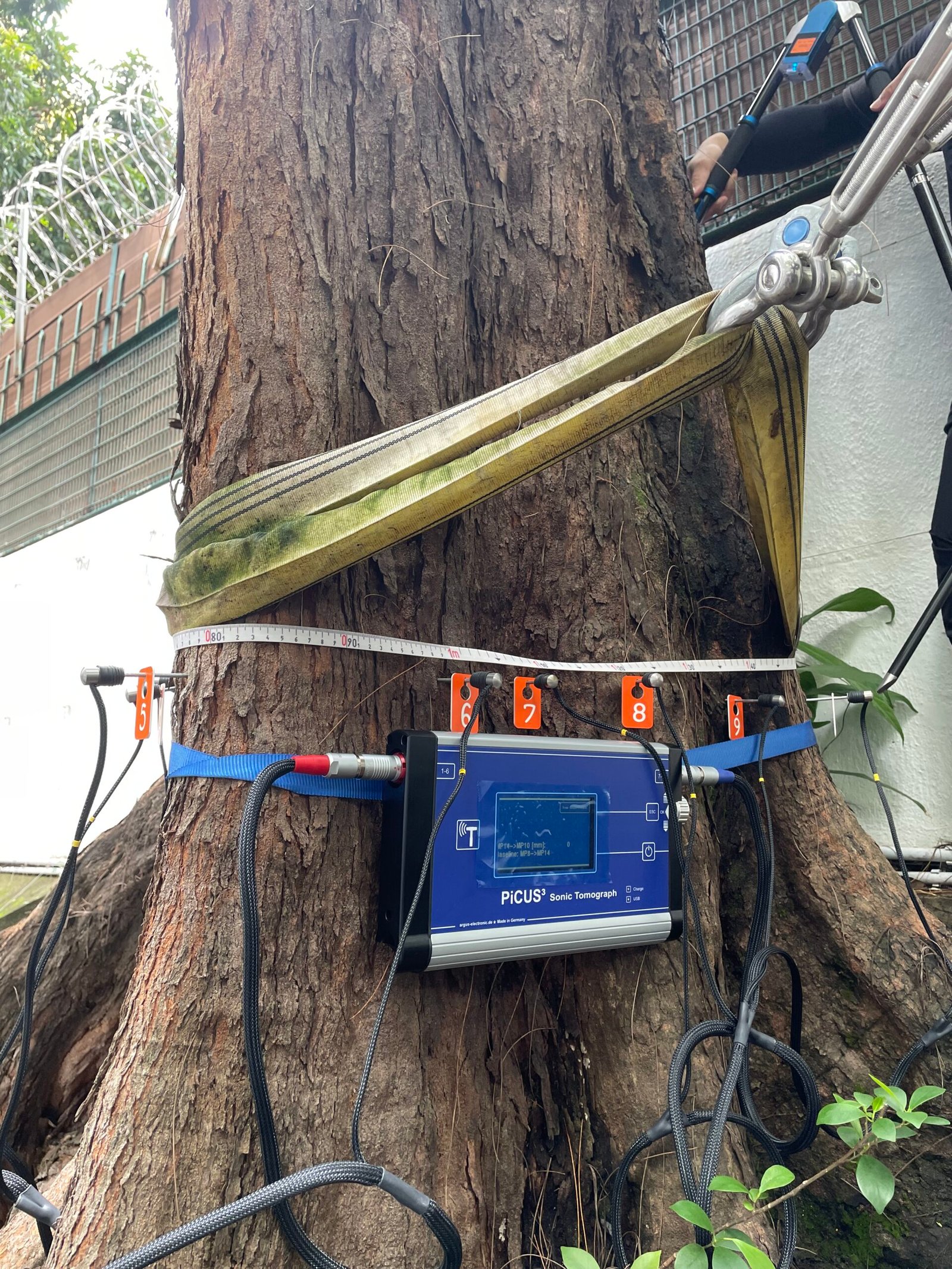 • Installs tilt sensors and inclination monitors to detect early signs of root plate movement, overall tree displacement, or progressive leaning—all of which may indicate structural instability or underground root failure.